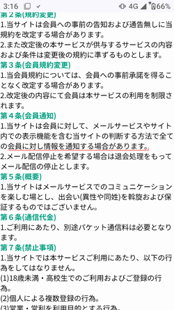 会員に対し情報を通知するとのことです。これはおそらくサクラがメッセージを送ることを「情報を通知」と表現しています。サクラとおしゃべりするのが好きな人以外は登録しない方が良いかもしれません。