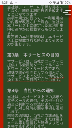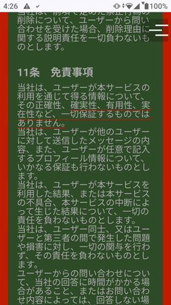 これもサクラサイトあるあるなのですが、出会えないサイトの利用規約には「当サイトは出会い系ではございません」などと書かれていることもあります。誰がどう見ても出会い系サイトなのに規約には出会い系じゃないと書いてある、こういうサイトは大体サクラを使っているので注意してください。